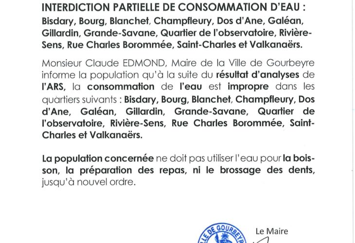 COMMUNIQUE INTERDICTION PARTIELLE DE CONSOMMATION DE L’EAU