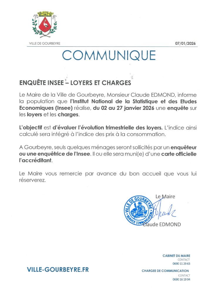Communiqué, Ville de Gourbeyre (Informations pratiques)