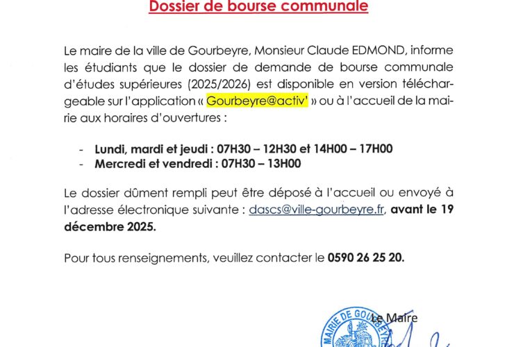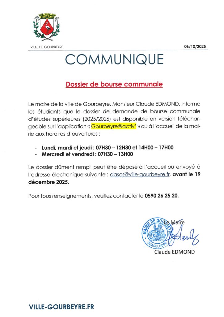 Communiqué, Ville de Gourbeyre (Informations pratiques)