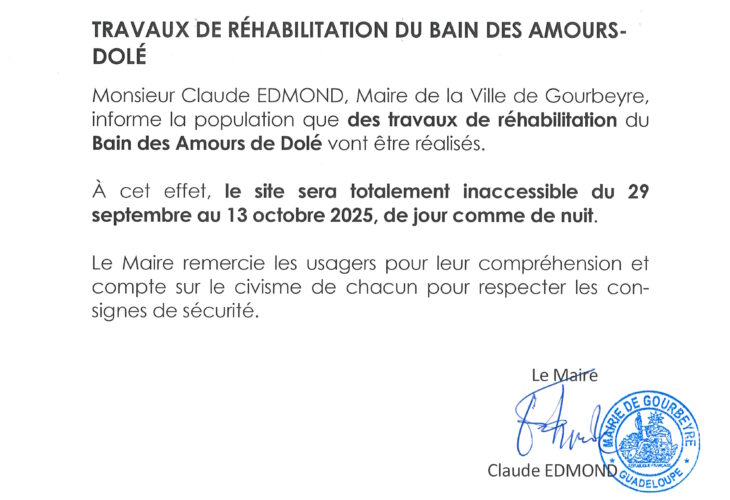 Communiqué, Ville de Gourbeyre (Informations pratiques)