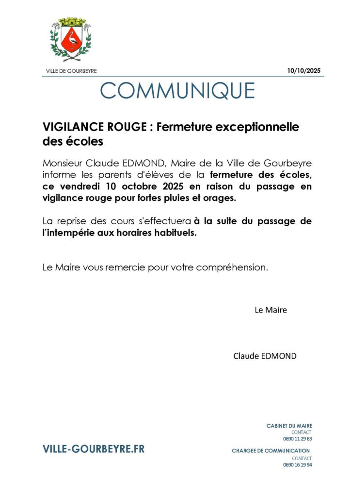 Communiqué, Ville de Gourbeyre (Informations pratiques)